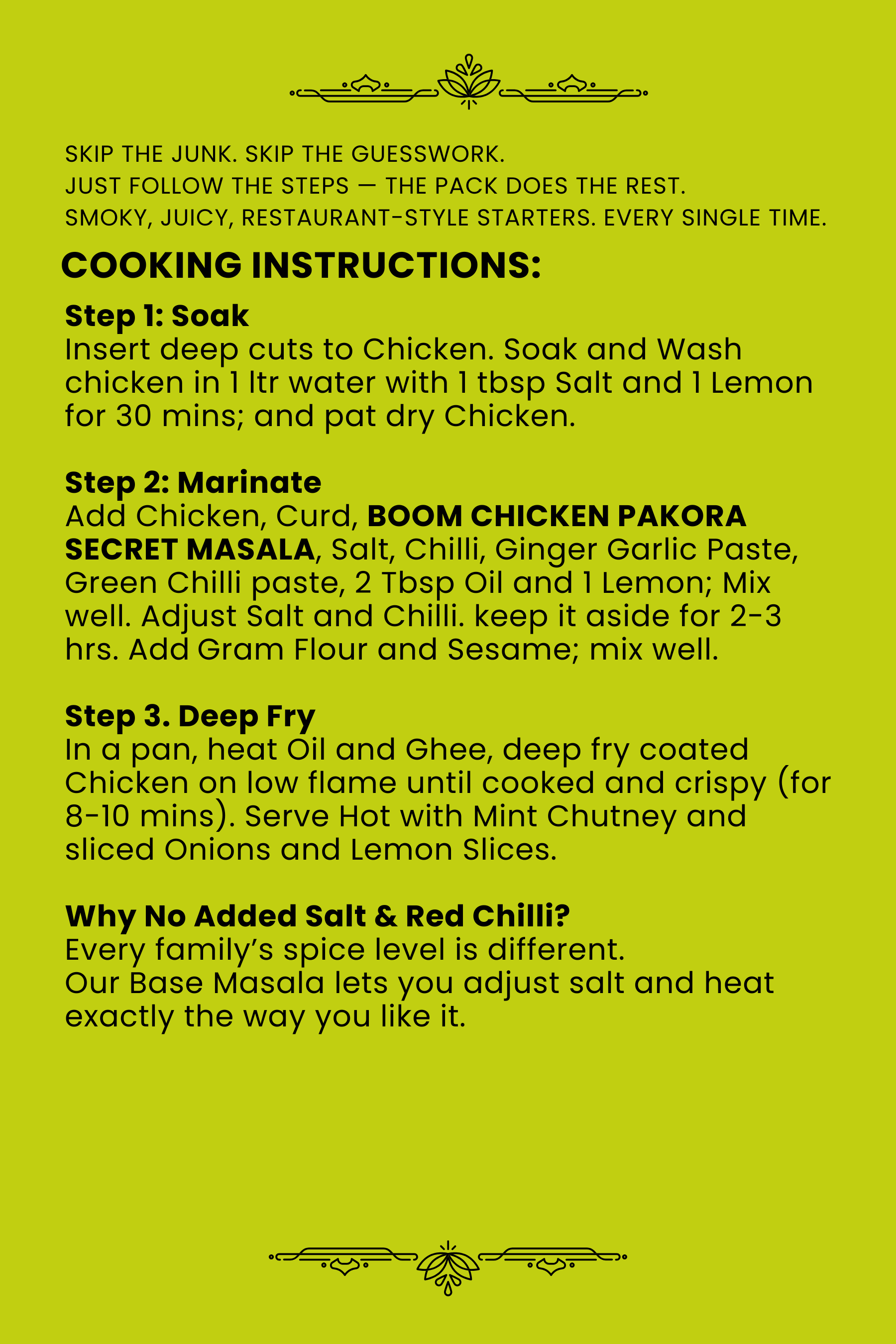 Our Base Masala lets you adjust salt and heat exactly the way you like it.