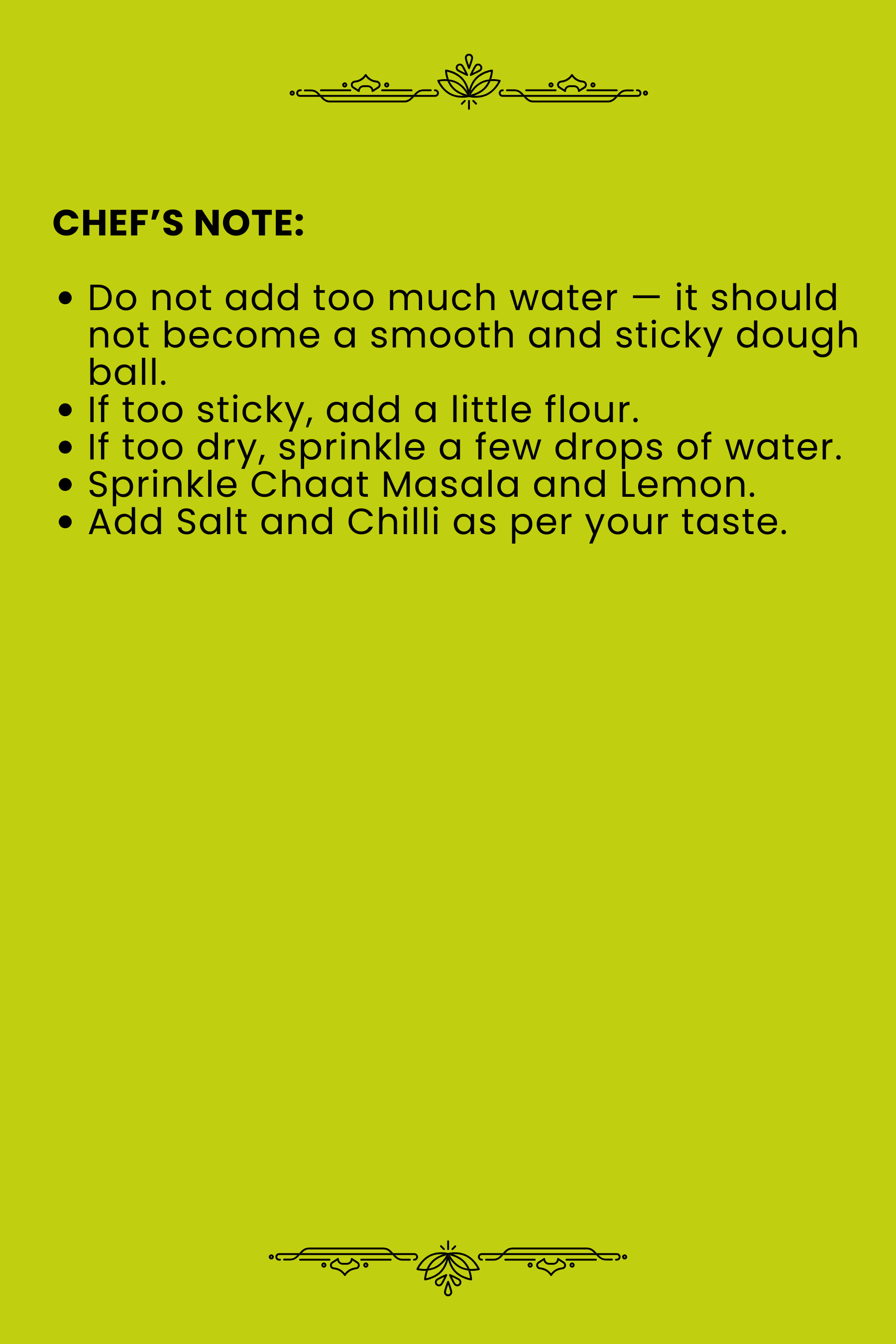 Salt 2–2½ tsp | Chilli 1–1½ tsp