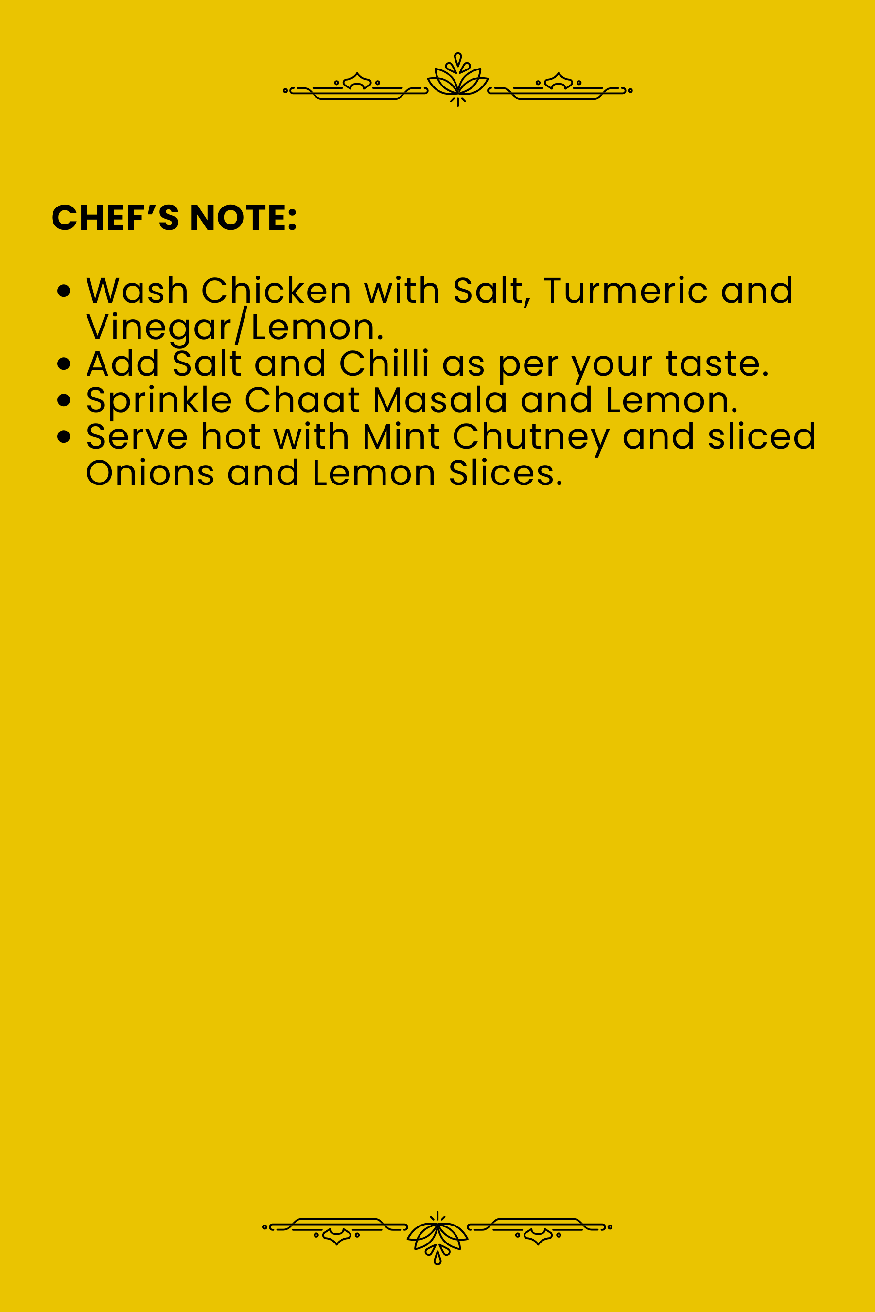 • Wash Chicken with Salt, Turmeric and Vinegar/Lemon.