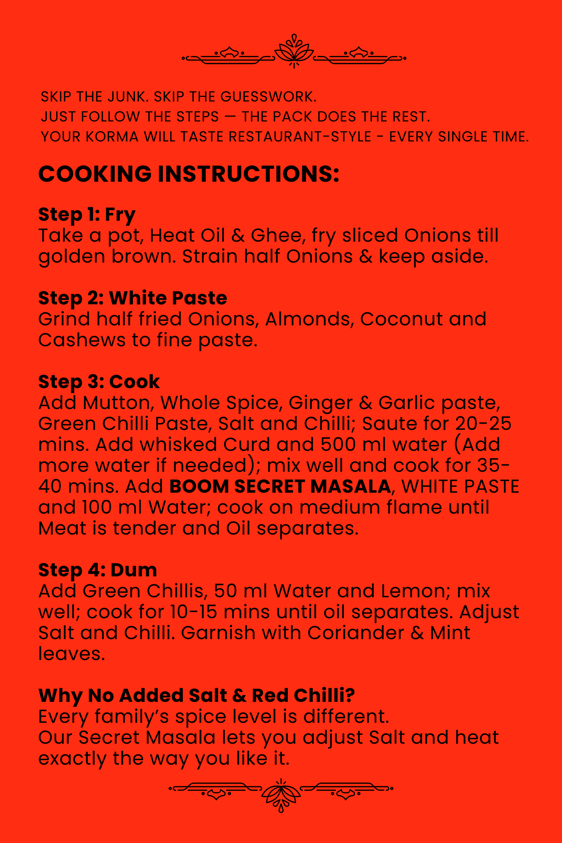 your KORMA will taste restaurant-style – every single time.
