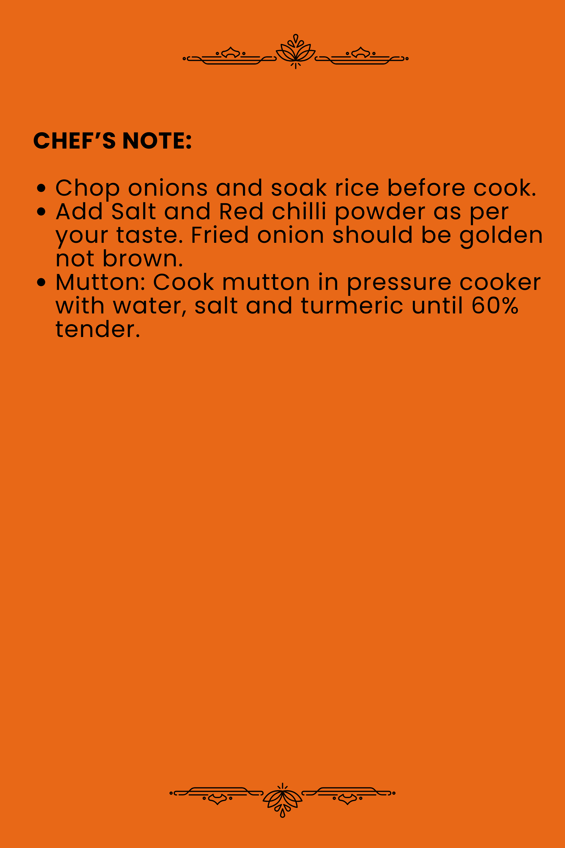 - For Mutton: pressure cook gravy first, then follow the same steps.