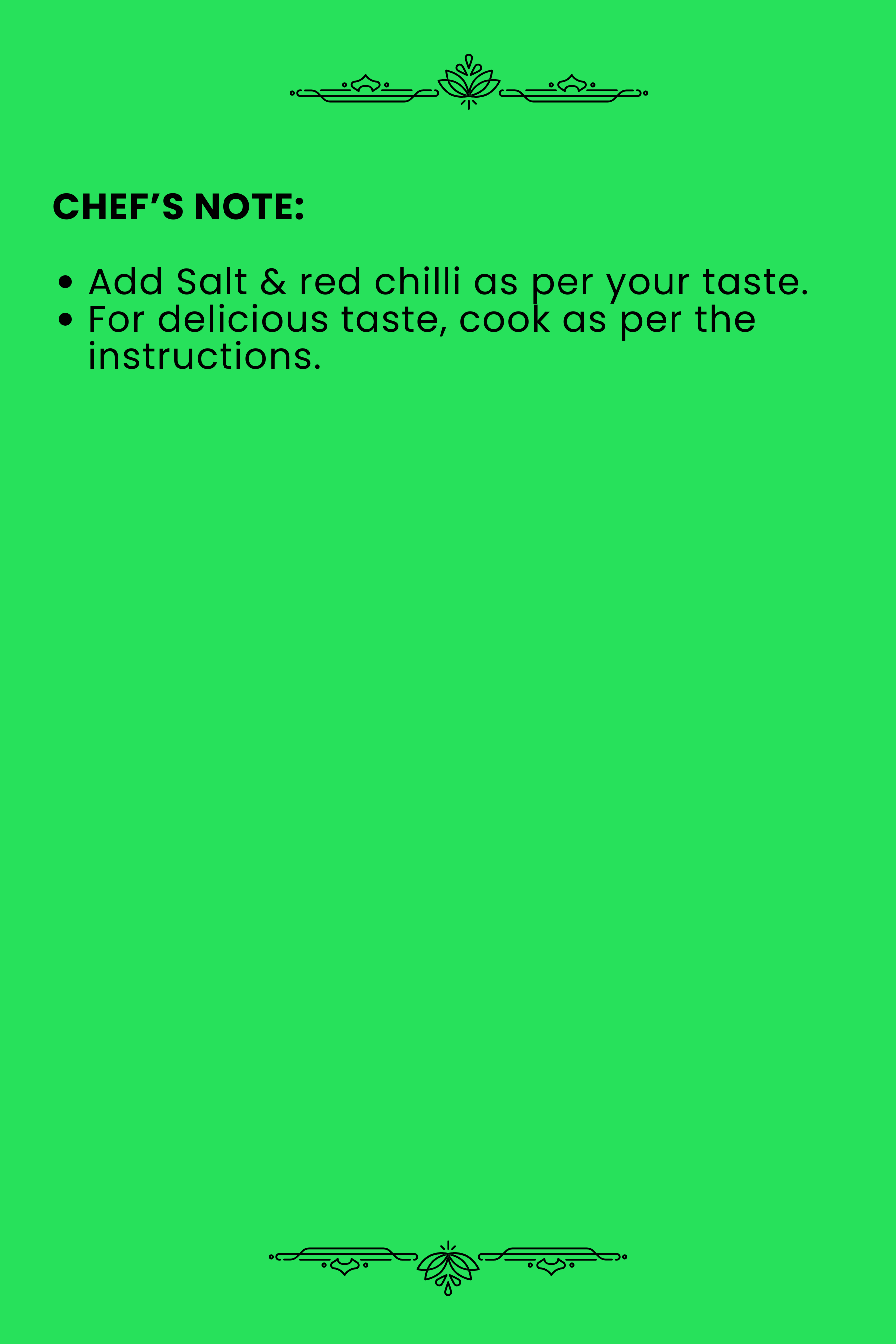 Our Secret Masala lets you adjust Salt and heat exactly the way you like it.