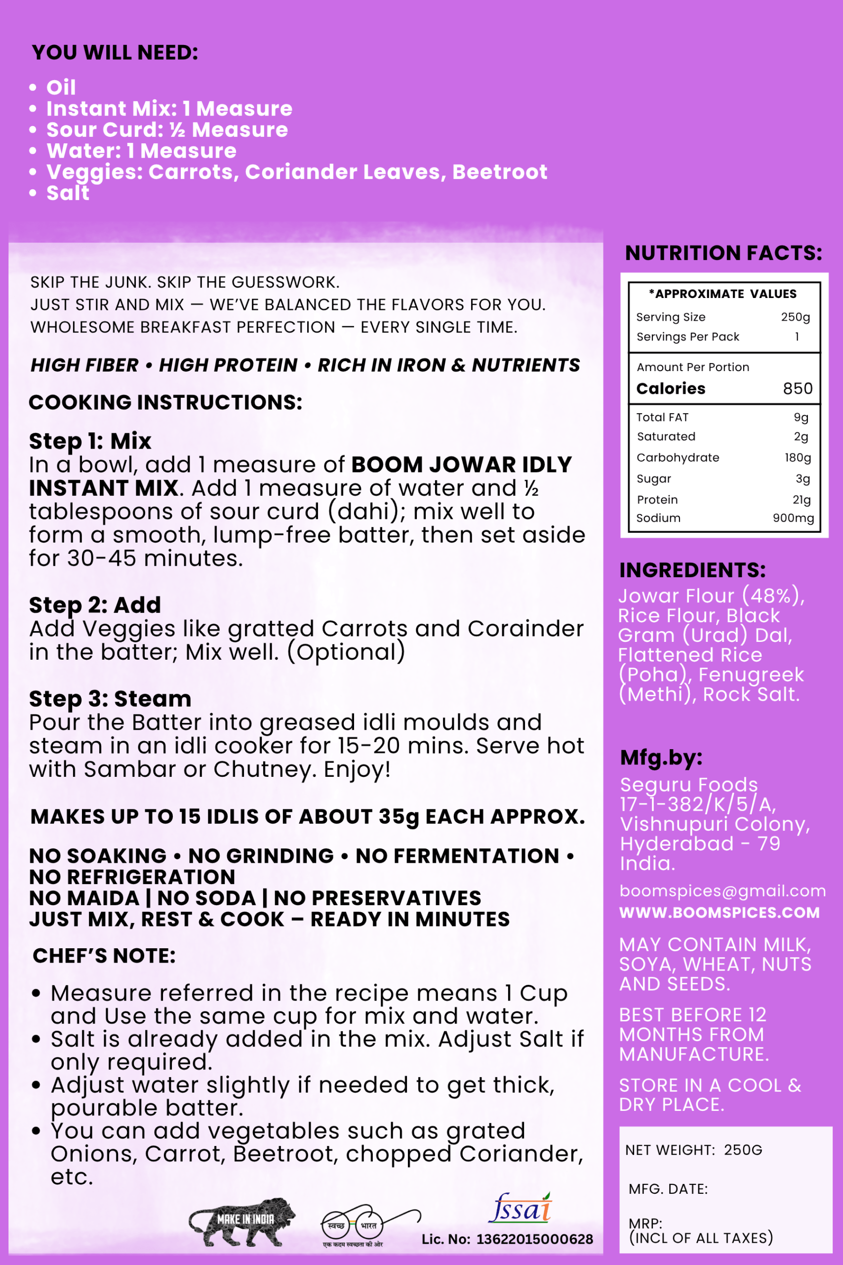 MAKES UP TO 15 IDLIS OF ABOUT 35g EACH APPROX.