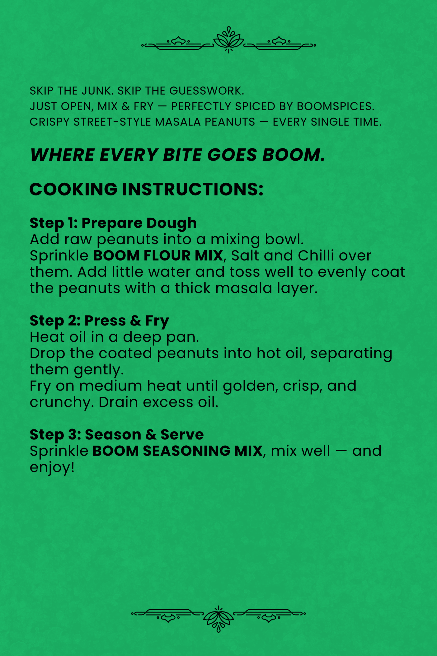 Sprinkle BOOM SEASONING MIX, mix well — and enjoy!