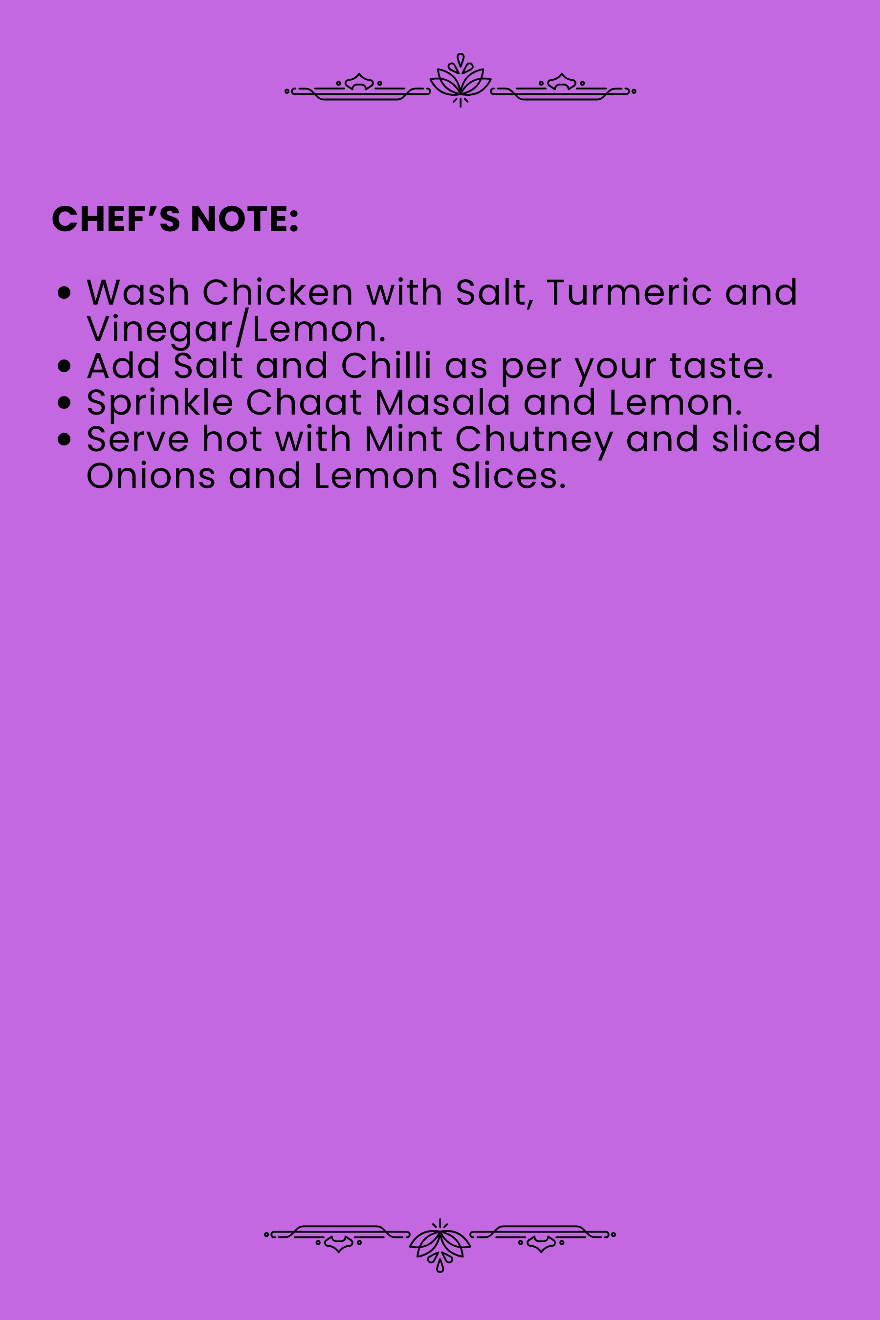 • Wash Meat with Salt, Turmeric and Vinegar/Lemon.