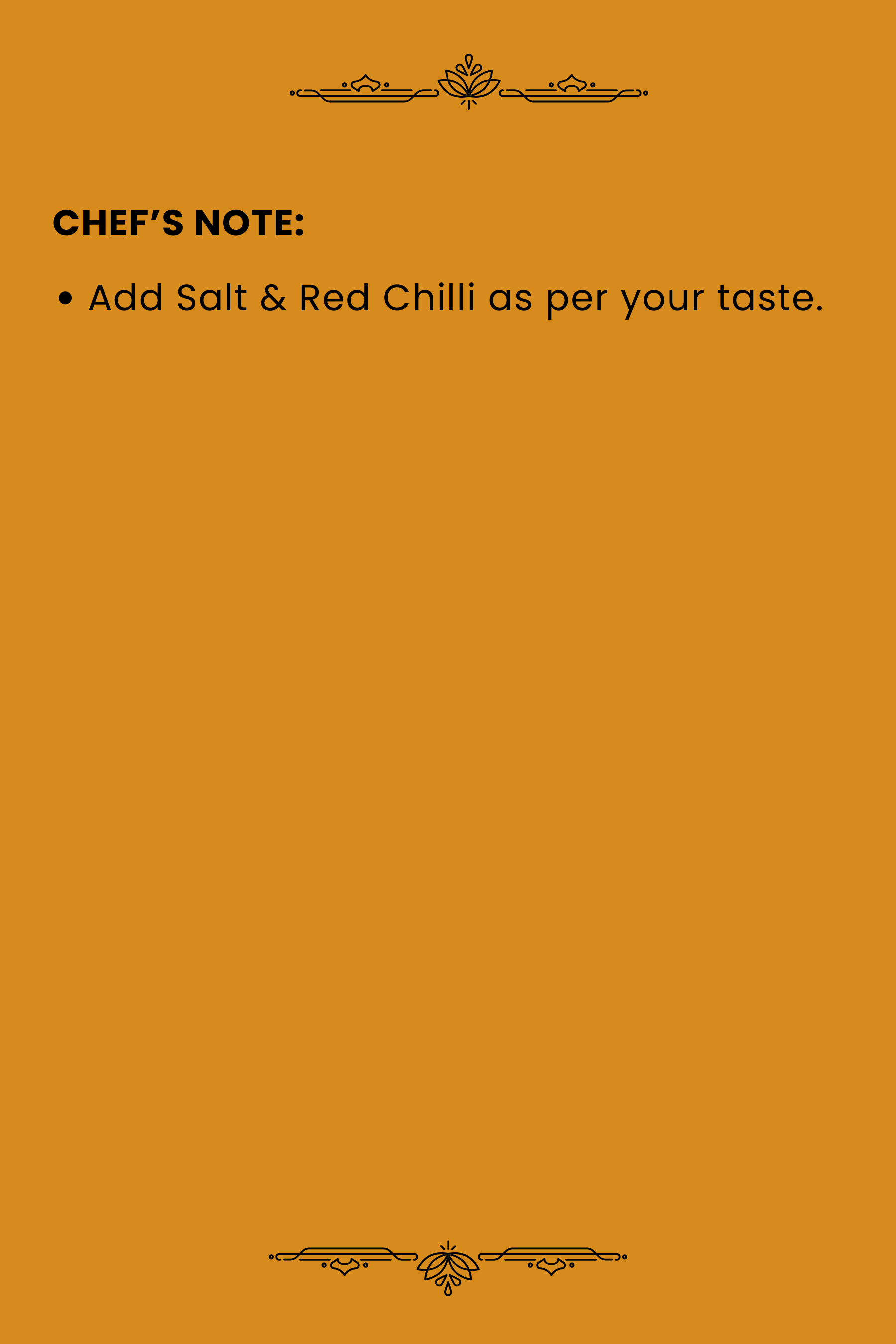 Salt 2–2½ tsp | Chilli ½-1 tsp