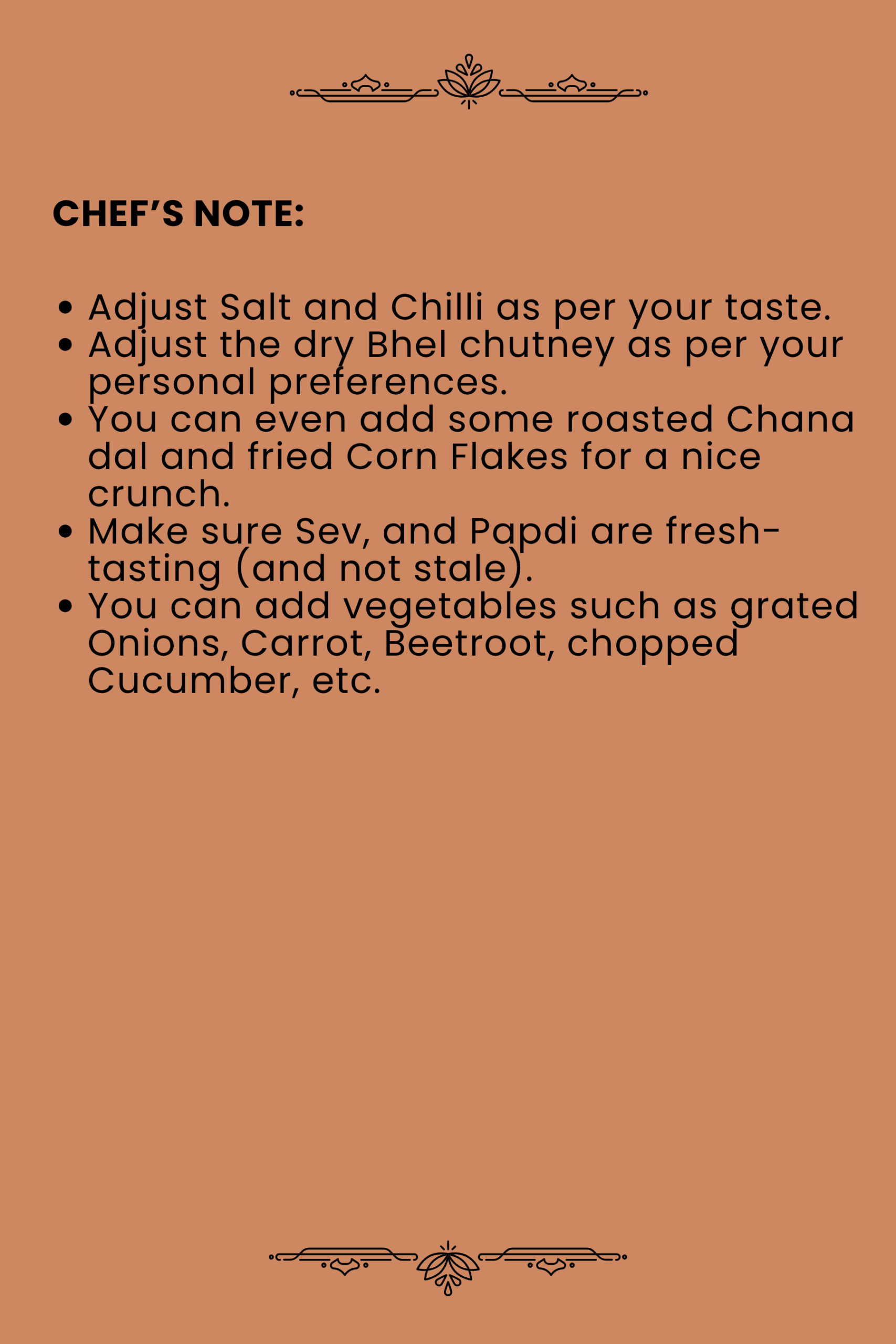 - Make sure Sev, and Papdi are fresh-tasting (and not stale).