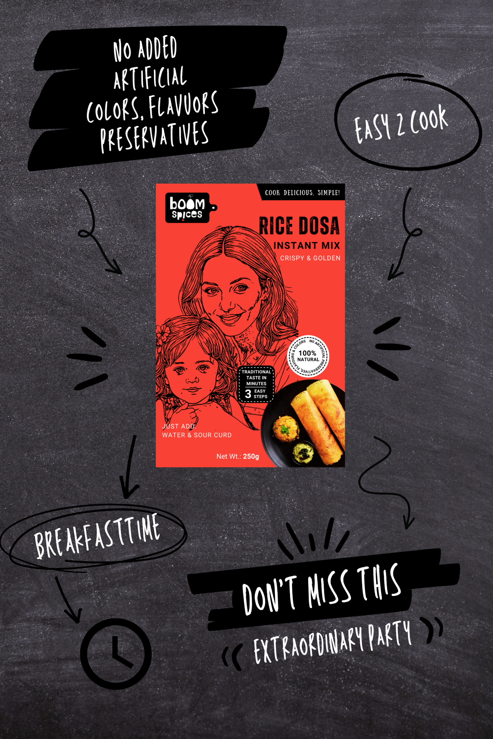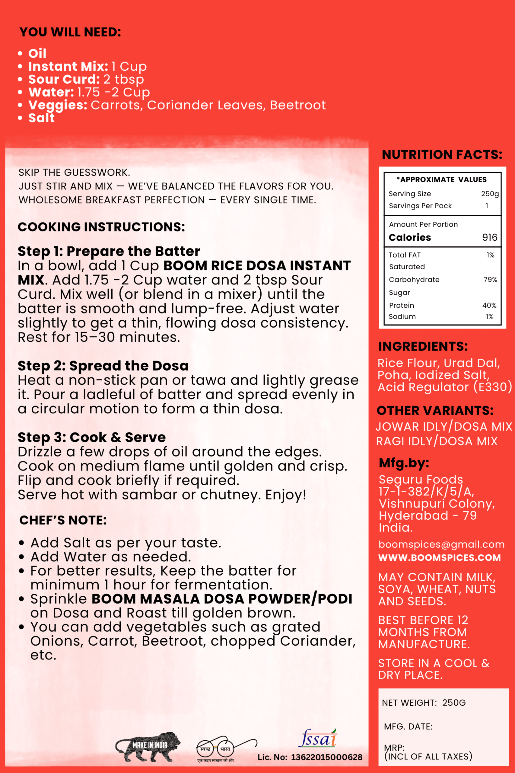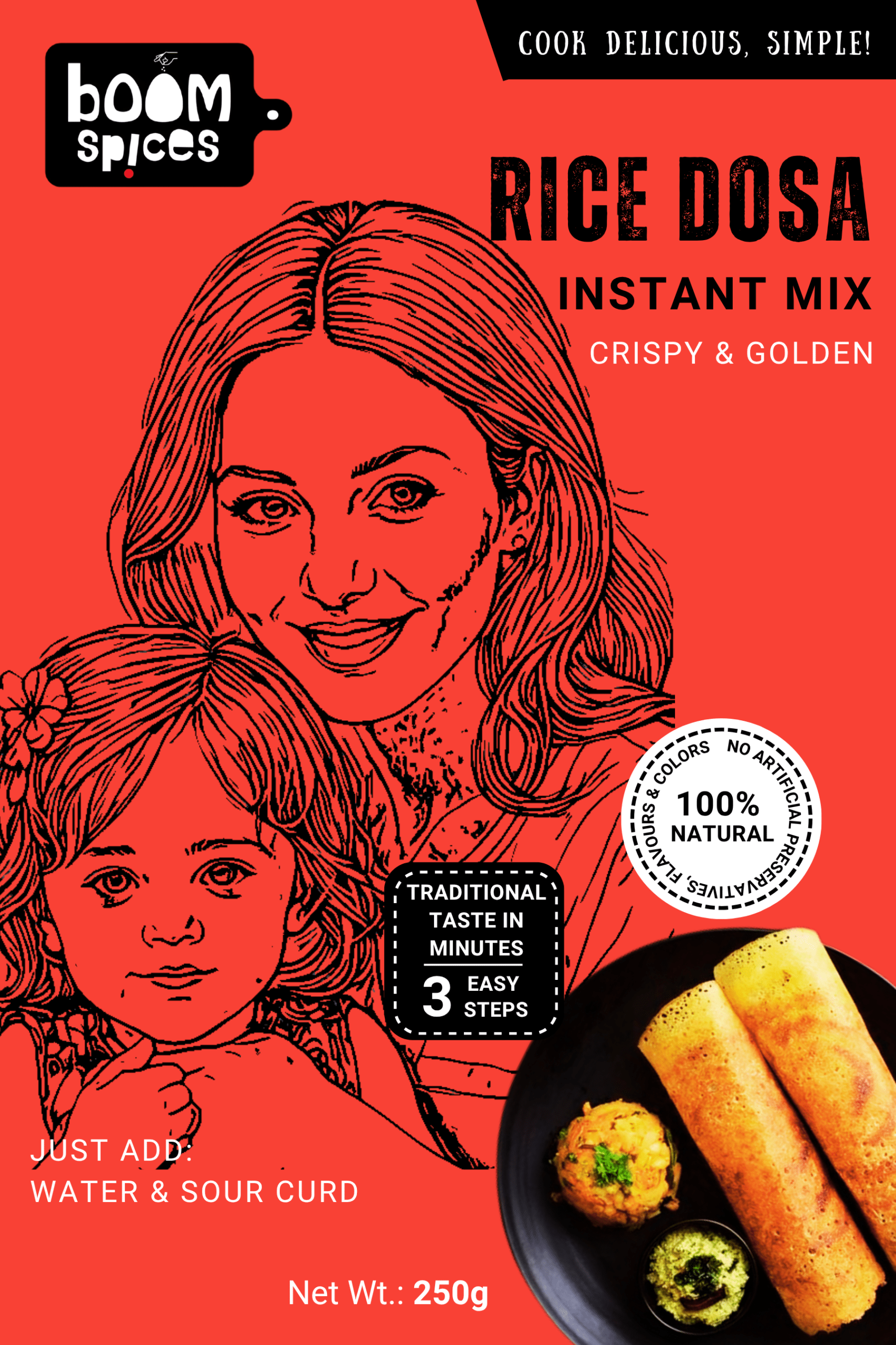 - Sprinkle BOOM DOSA PODI on Dosa and Roast till golden brown.