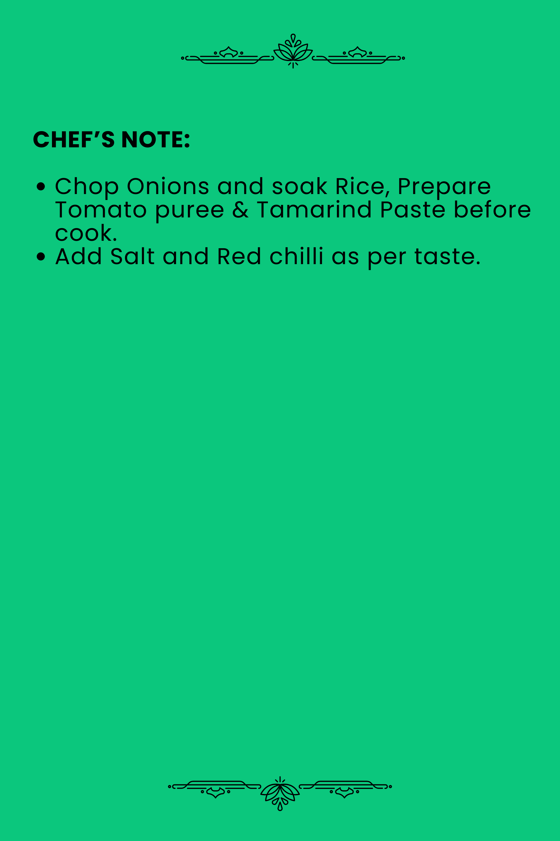 Salt 2–2½ tsp | Chilli 1–1½ tsp