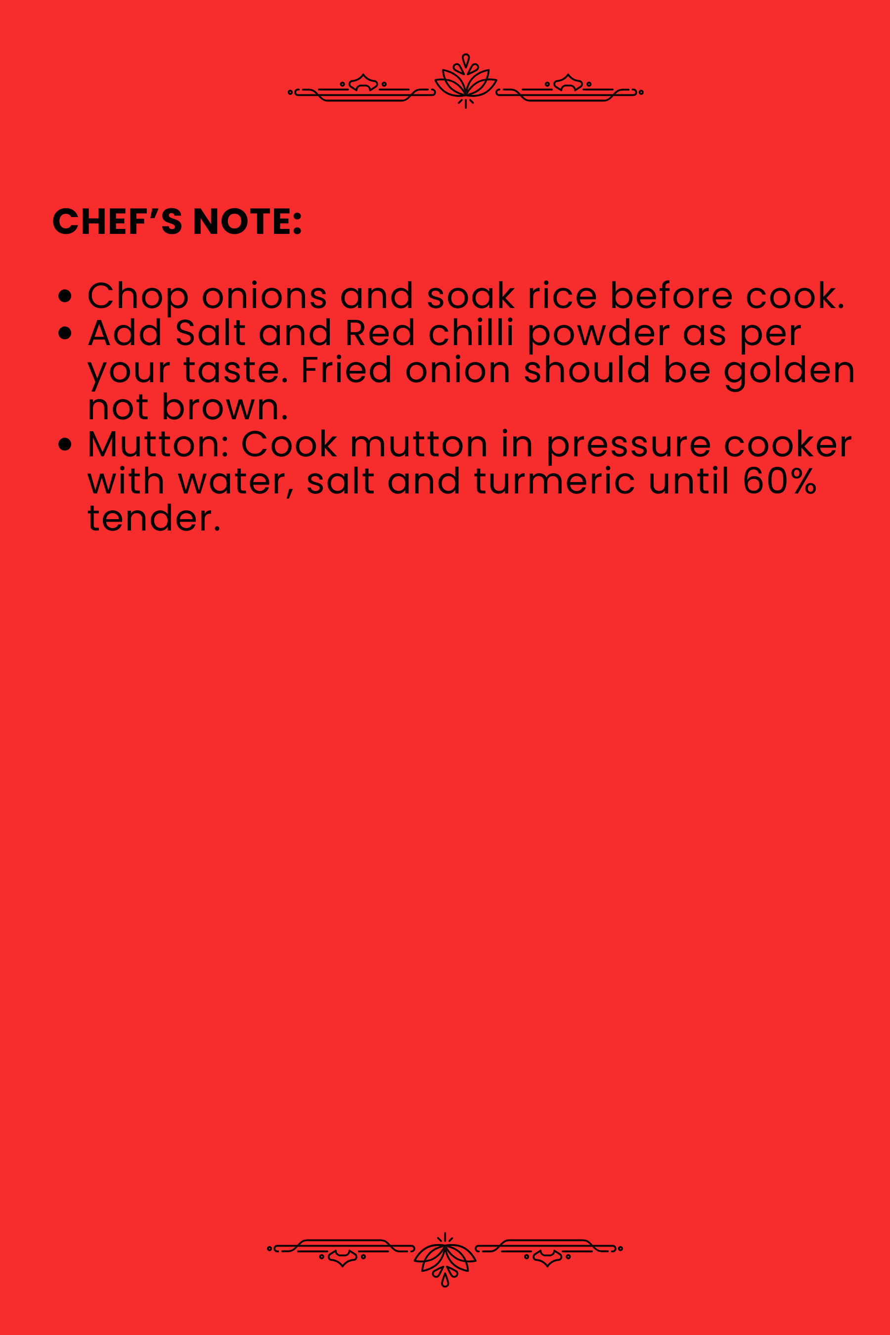 Use 1 sachet for 1 kg of Chicken/Meat to make authentic biryani.